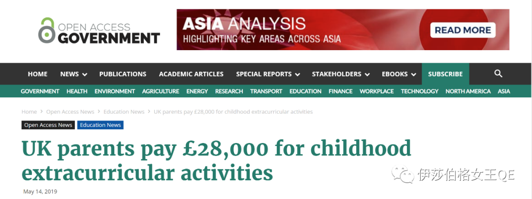 英国媒体Open Access Government 2019年5月14日的一篇报道指出:经研究表明,在孩子年满18周岁前,英国父母要花28000英镑在孩子的课外活动上。