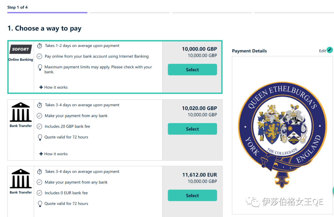 QE与西联(也就是现在的Convera)合作,家长可以通过西联帮学生交学费、押金。