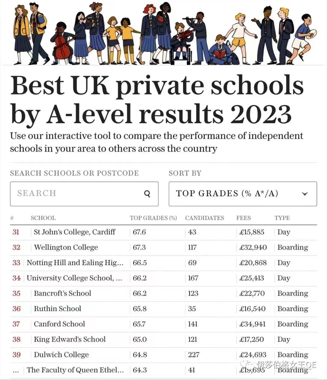 其二,QE今年顶住了全英A level成绩下滑的压力,成绩不降反升,College以83.8%的A*-A的优异成绩雄霸英国私校排名第6的位置;Faculty以64.3%的A*-A的成绩维持在英国私校排名第40左右的位置。