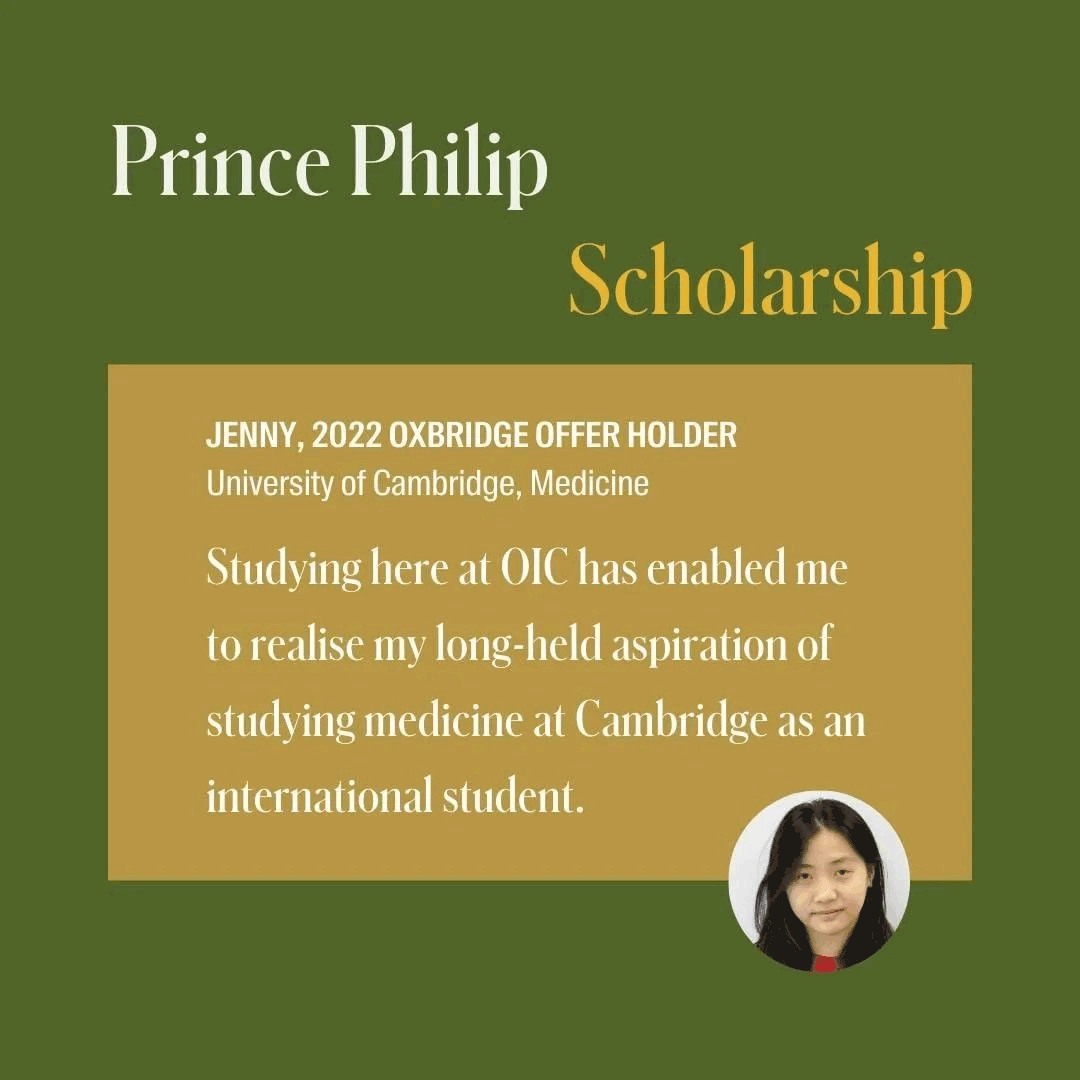 热烈祝贺OIC2022年牛津剑桥预录取通知书持有者之一Jenny,获得香港剑桥大学之友颁发的菲利普亲王奖学金!