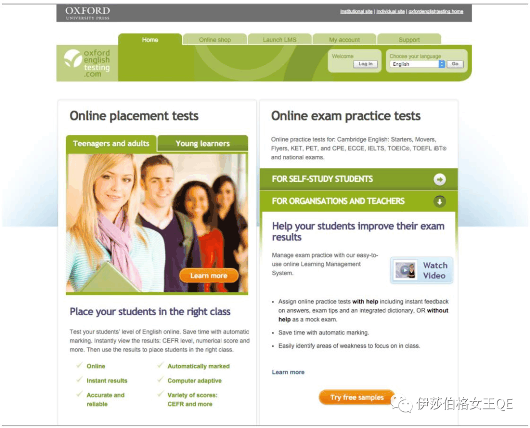 步骤一:访问https://www.oxfordenglishtesting.com登录牛津英语线上测试官网,点击“launch LMS”按钮
