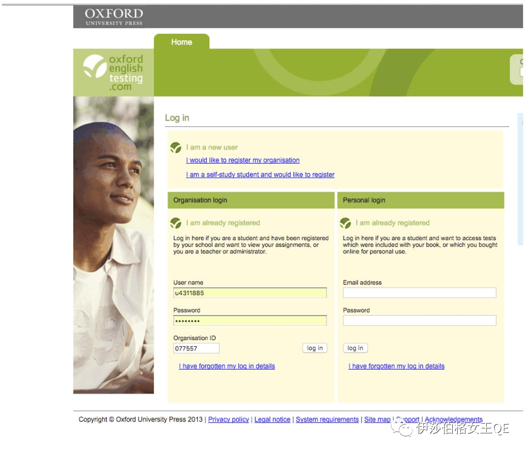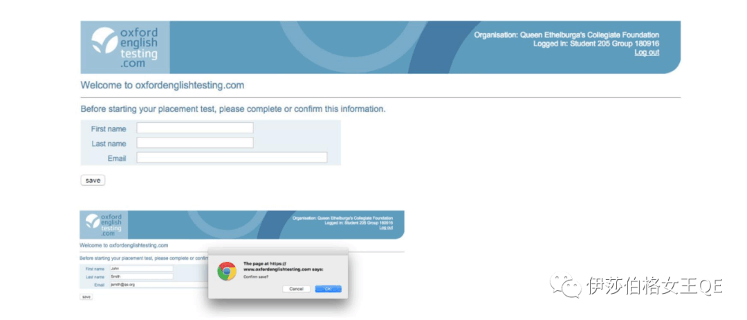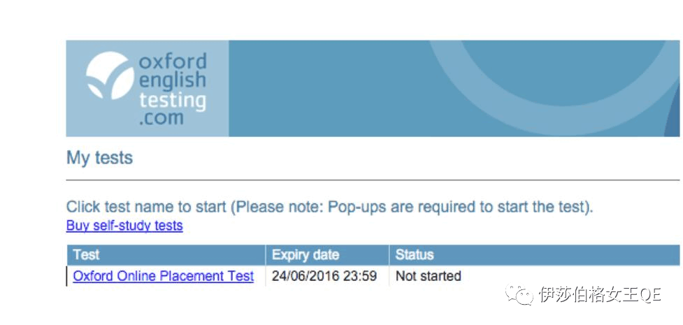 步骤四:点击保存后,您将看到以下屏幕,请点击“Oxford Online Placement Test”蓝色链接;