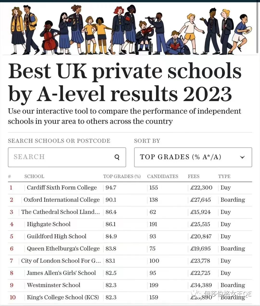 其二,QE今年顶住了全英A level成绩下滑的压力,成绩不降反升,College以83.8%的A*-A的优异成绩雄霸英国私校排名第6的位置;Faculty以64.3%的A*-A的成绩维持在英国私校排名第40左右的位置。